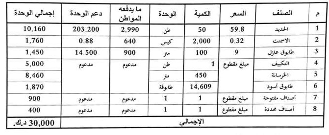 تعديلات على كميات مواد الدعم الإنشائي