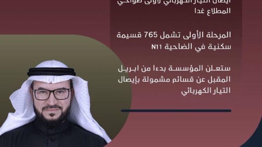 "السكنية": ايصال التيار الكهربائي لأولى ضواحي المطلاع غدا