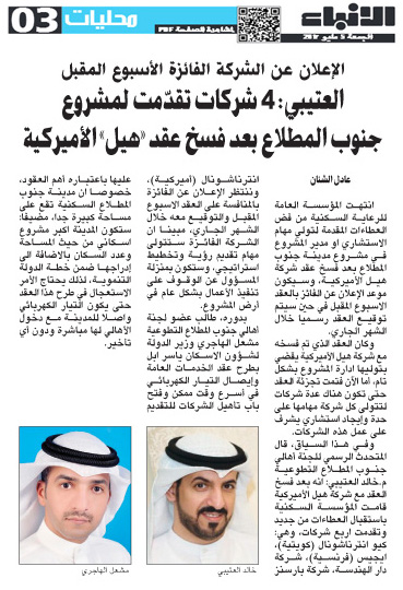 الإعلان عن الشركة الفائزة الأسبوع المقبل