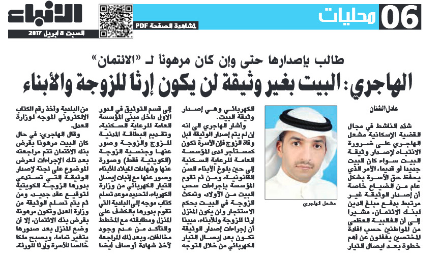 الهاجري: البيت بغير وثيقة لن يكون إرثاً للزوجة والأبناء
