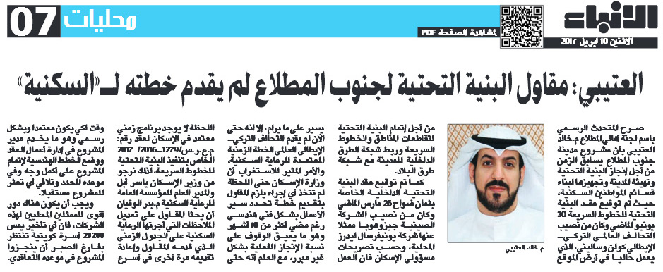 العتيبي: مقاول البنية التحتية لجنوب المطلاع لم يقدم خطته لـ«السكنية»