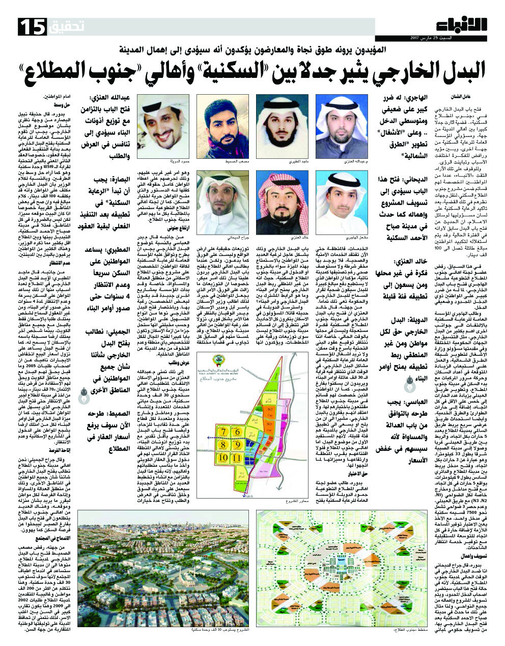 البدل الخارجي يثير جدلاً بين «السكنية» وأهالي «جنوب المطلاع»