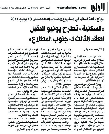 «السكنية» تطرح يونيو المقبل العقد الثالث لـ«جنوب المطلاع»